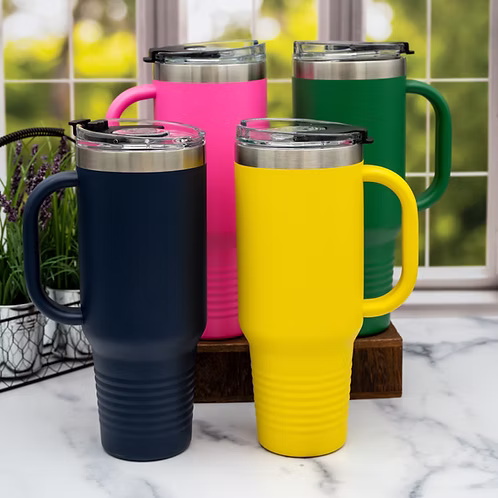 Everyday favorites made personal: Engravable Water Bottle and Engravable Ringneck Tumbler with Clear Lid - great for teachers, coaches, grads, and coworkers.